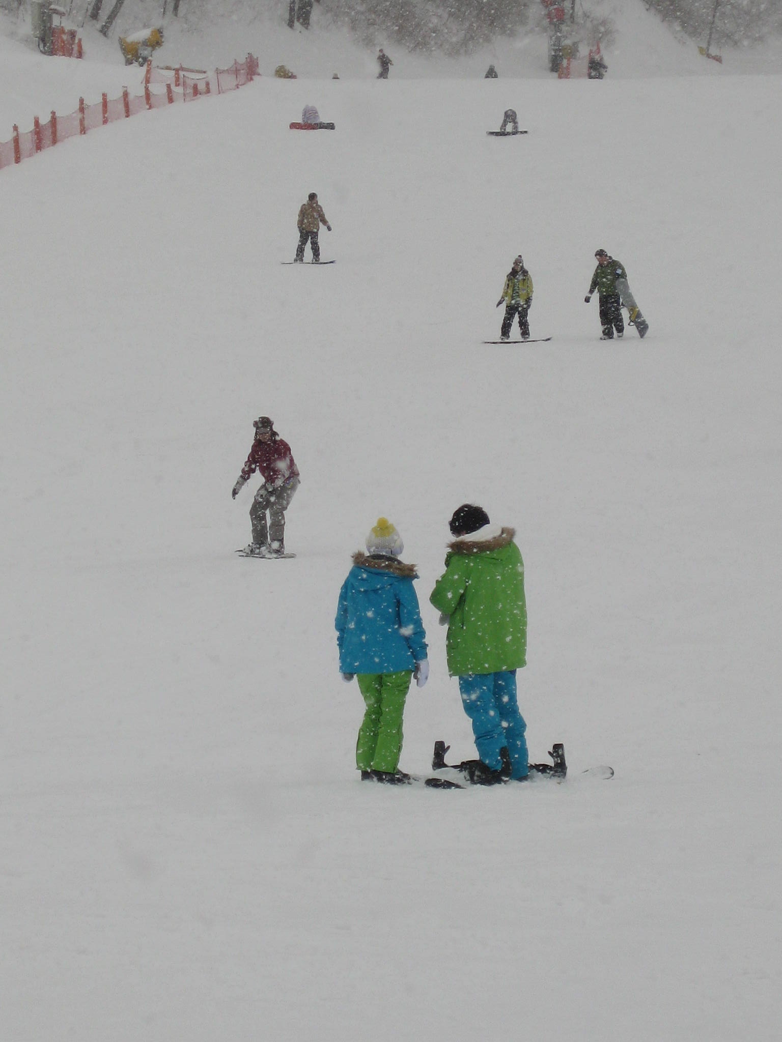 The bus took about 3 hours, and when we arrived at the hill, it was snowing! Fresh powder, and near empty slopes. We strapped on our boards and had an amazing afternoon playing in the powder. But I won’t lie to you. We were bored of the runs after about 45 minutes. The double-black diamond is comparable to a groomed blue run on Whistler, and the green runs are, for all intensive purposes, flat. And full of skiiers and snowboarders sprawled on their faces and infants doing the pizza and crashing into petrified adults who are also doing the pizza. Every run is fenced in, which makes riding in the trees a near impossibility. They boast 7 lifts. There are 12 trails. There are 7 lifts to service 12 trails, and yes, it is exactly as ridiculous as it sounds.