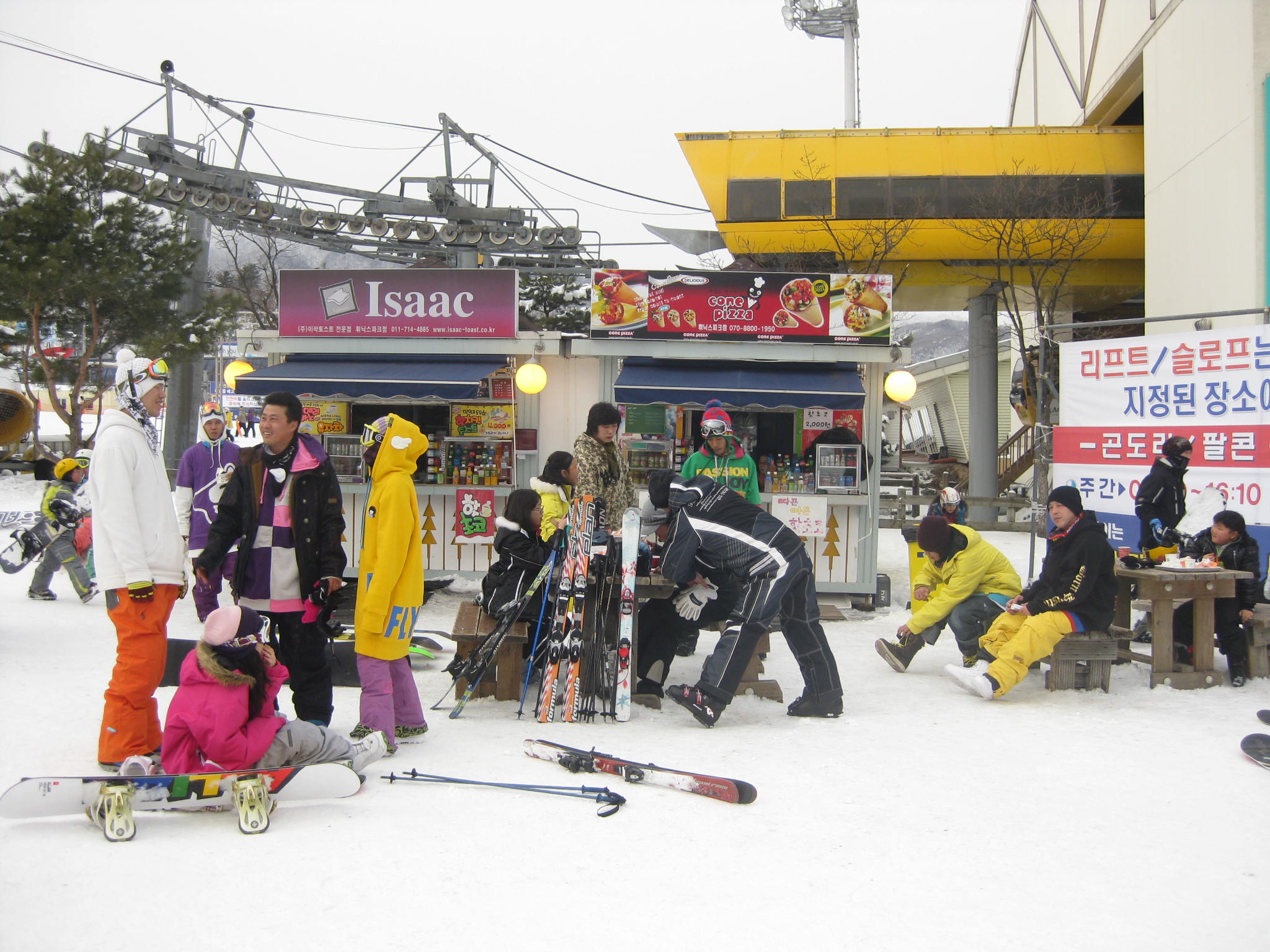 Most ski resorts in Korea have night riding that is open late, and by late I mean well into the morning. On Saturday night, after one-too-many games of King’s Cup, a few of us decided it was high-time to go riding again, and hit the slopes from 2am until about 4am. We rode on fresh snow to the sound of deejays playing tunes under a crystal clear starry sky. Life is rough.
